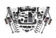 Featuring a robust front suspension setup with high-clearance steel crossmembers, relocation brackets, and upgraded steering components, the kit maintains proper geometry and ESC system functionality at the lifted ride height. The complete front assembly includes skid plates, sway bar drops, brake lines, and more to ensure durability and reliability.